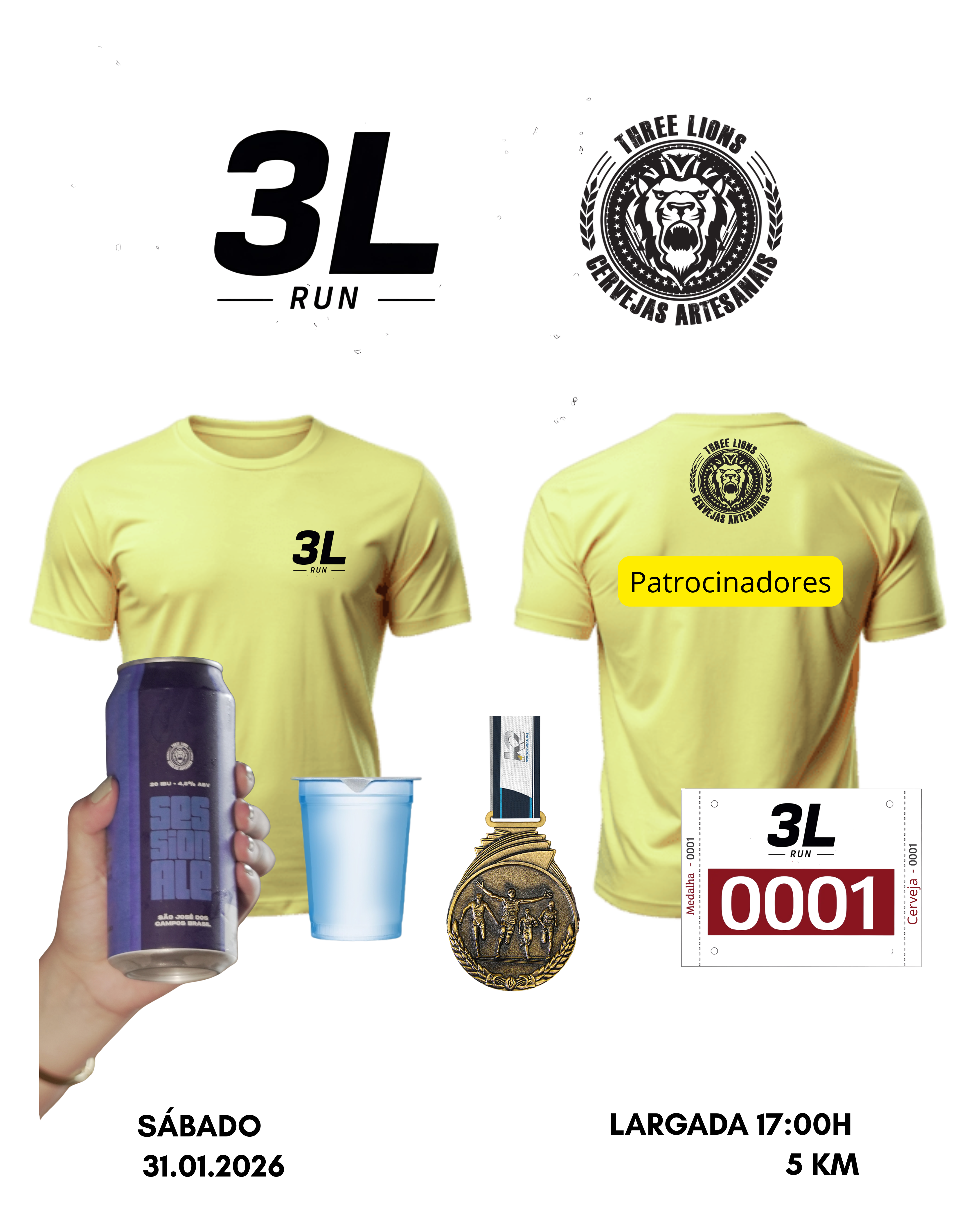 Prepare-se para 5km de pura vibração! A 3L RUN está de volta em sua versão NOTURNA, unindo desafio, diversão e aquele clima de celebração que só a Three Lions sabe criar. Corra no seu ritmo — a recompensa gelada te espera na linha de chegada!